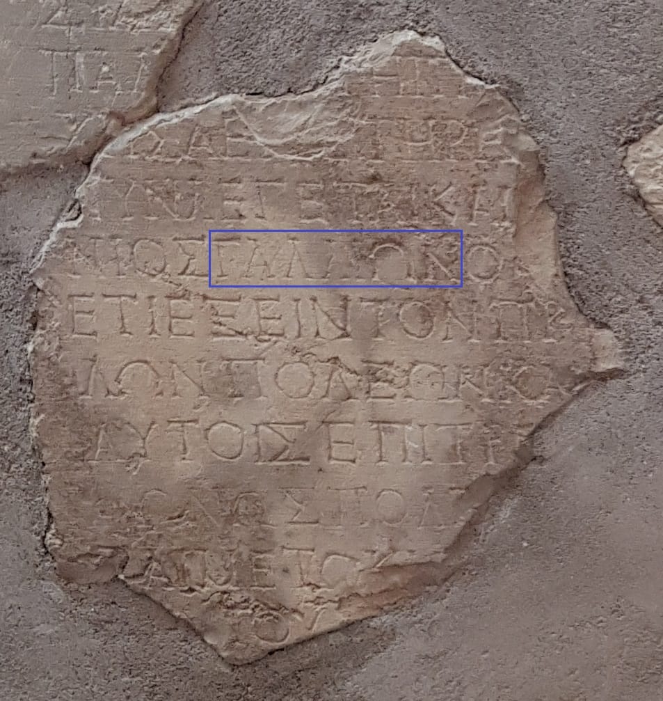 Kitab Kisah Para Rasul bab 18 mencatat bahwa Rasul Paulus dihadapkan ke pengadilan di hadapan Gallio, prokonsul Akhaya, di kota Korintus. Pada tahun 1905, para arkeolog Prancis menemukan fragmen-fragmen sebuah prasasti di kuil Dewa Apollo di Kota Delphi, Yunani, yang berisi surat dari Kaisar Klaudius yang menyebutkan "Lucius Junius Gallio, sahabatku dan prokonsul Akhaya."